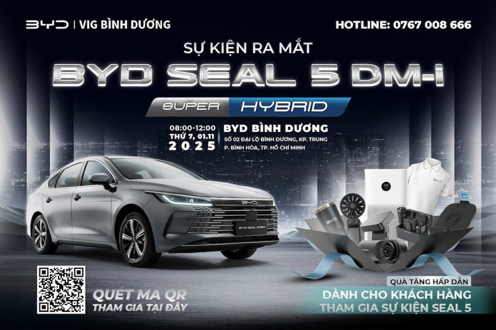 TP.HCM, 1/11 tới đây tại showroom BYD Bình Dương, trung tâm trưng bày và phân phối chính hãng lớn nhất của BYD tại TP.HCM, sẽ chính thức tổ chức sự kiện ra mắt mẫu xe BYD SEAL 5 DM-i. Đây là cột mốc quan trọng, không chỉ đánh dấu sự xuất hiện của một siêu phẩm công nghệ mà còn khẳng định cam kết của BYD trong việc mang đến những giải pháp di chuyển xanh, thông minh và hiệu suất cao cho thị trường Việt Nam.