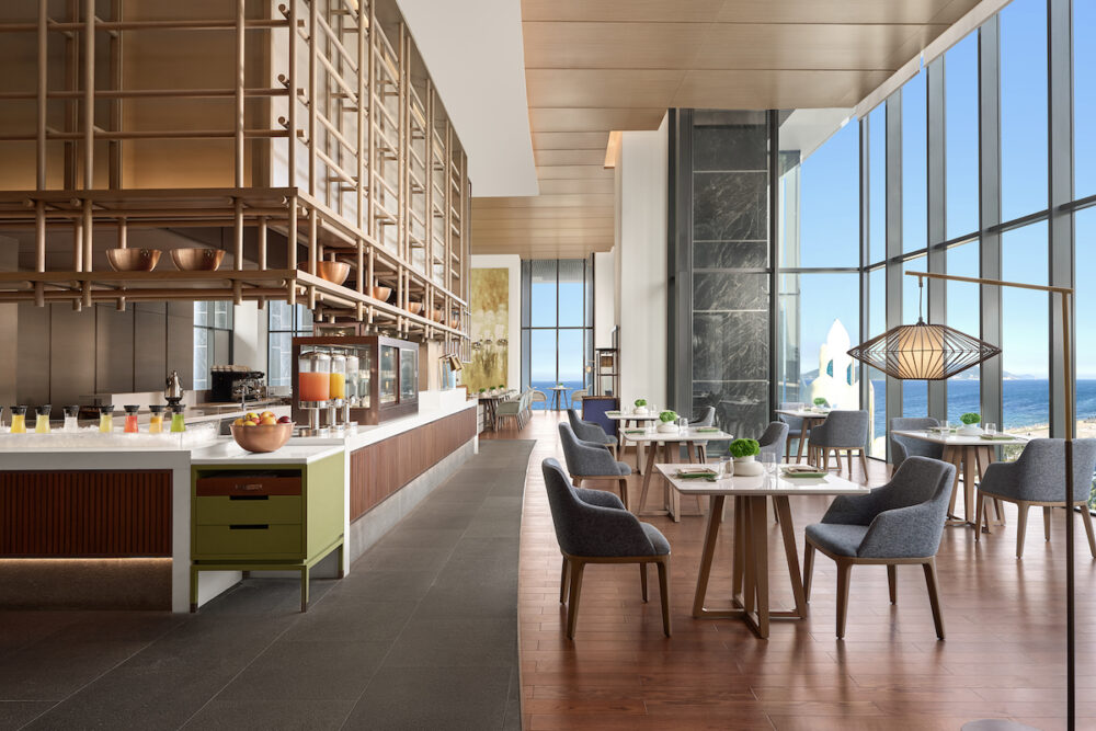 Ẩm thực tại Hyatt Regency Nha Trang cũng được kể một câu chuyện riêng hơn là một dịch vụ ăn uống đơn thuần. Nhà hàng Market Café thể hiện rõ nét điều đó, nơi phong vị Ý và ẩm thực Việt giao thoa trong không gian bếp mở sống động. Nơi thực khách có thể nghe thấy tiếng chảo nóng, cảm nhận hương thơm của từng món ăn vừa được chế biến tại quầy. Trong khi đó, The Lounge mang đến một không gian tinh tế và giàu cảm xúc, lý tưởng để thưởng thức trà chiều, bánh ngọt hay một ly cocktail được pha chế ngay trước mắt.